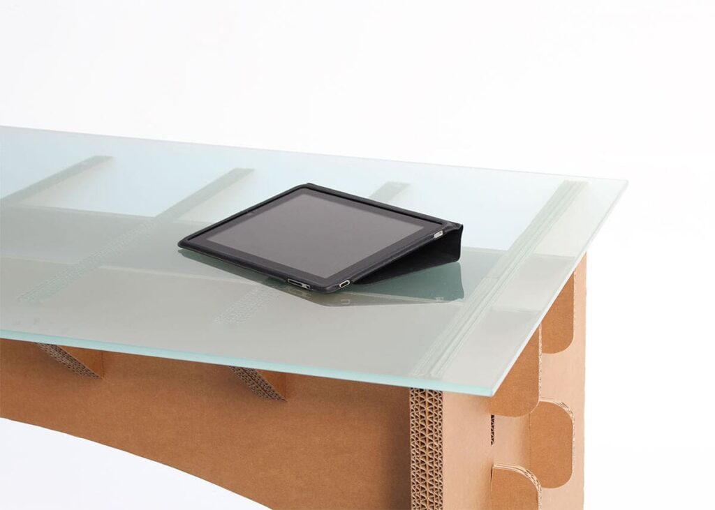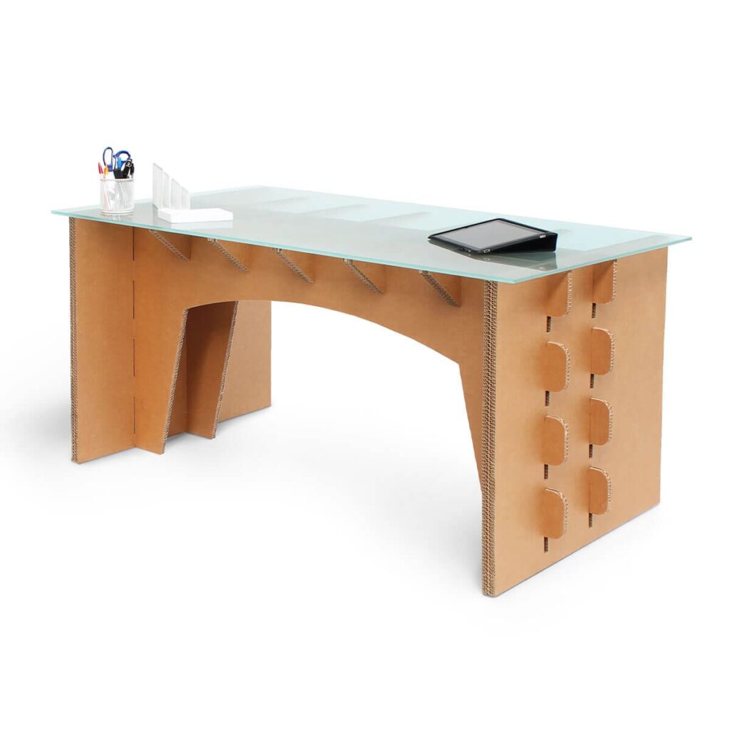 Le bureau en carton ATLAS offre une surface de travail spacieuse et stable, parfaitement adaptée pour un usage professionnel. Ergonomique, ses dimensions sont idéales pour procurer un confort optimal à vos collaborateurs.