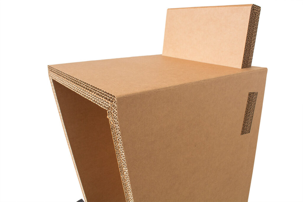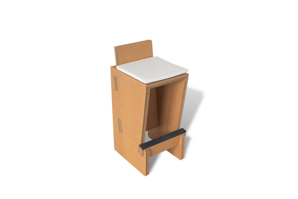 Le tabouret haut en carton BALDO est un mélange ingénieux de durabilité, de fonctionnalité et de design.